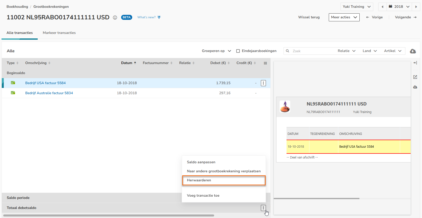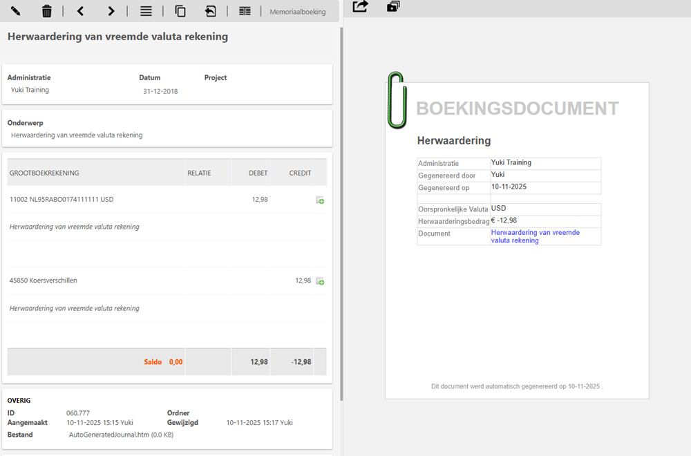 The balance of a foreign currency account can simply be revalued in Yuki. The GL account that contains the transactions of the relevant foreign currency account can be opened via the trial balance.