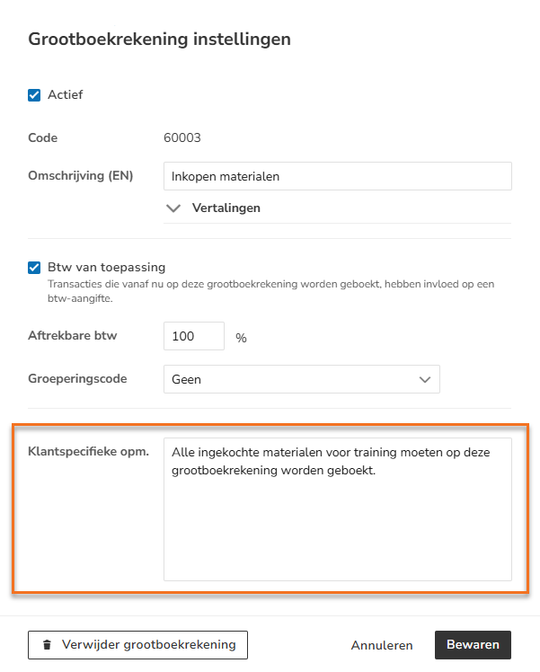 Hover your mouse over the Financials icon in the navigation bar and then click on Chart of accounts. Find and open the GL account for which you want to record a remark. Click on the More actions button and then select GL account settings from the dropdown menu. Record the remark(s) in the Customer-specific remarks field.