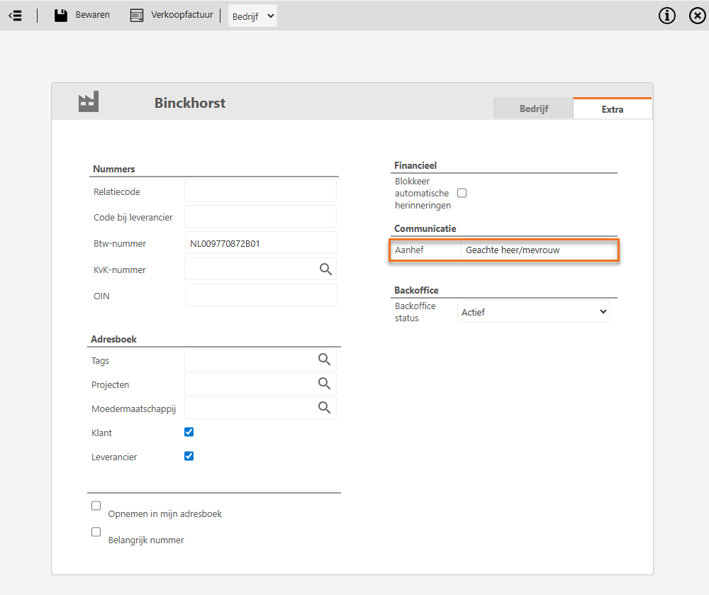 The text in the Heading field on a contact card is automatically used as the salutation (placeholder [heading]) in the text of the e-mail. This text must be translated into the correct language.
