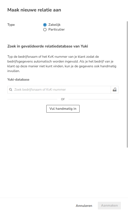 Type your customer's company name or Chamber of Commerce number so that the company information is filled in automatically. If you can't find your customer's company this way, you can also enter the data manually.