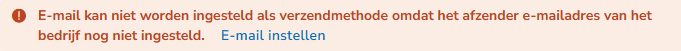 When a sender email address has not yet been set in the administration, the following message is shown:
