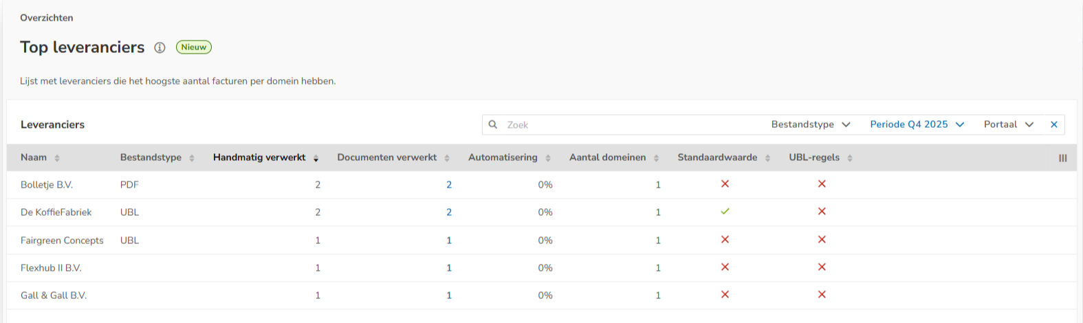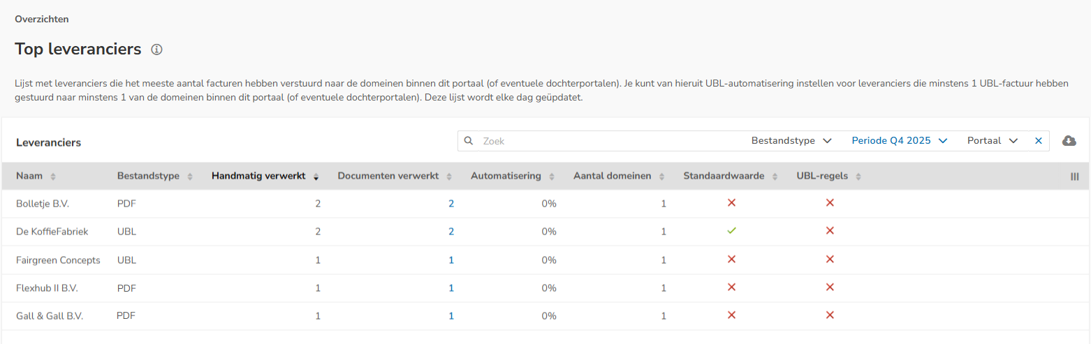Default values and UBL rules created in the portal for a supplier are applied in all domains, as long as no specific automation rules per domain are set for the supplier in question.