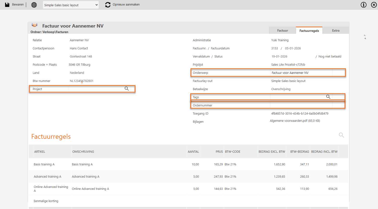 In order to send the sales invoice via Peppol to a Dutch government agency, the field 'Order number' must be filled in mandatory.