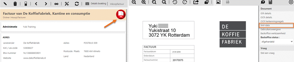 On the right side of your screen, you'll find the XML data. Clicking on it will open the underlying XML document for the invoice.