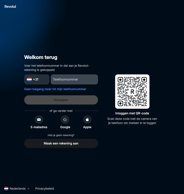 ORLog in in je Revolut Business Web-app (desktop)