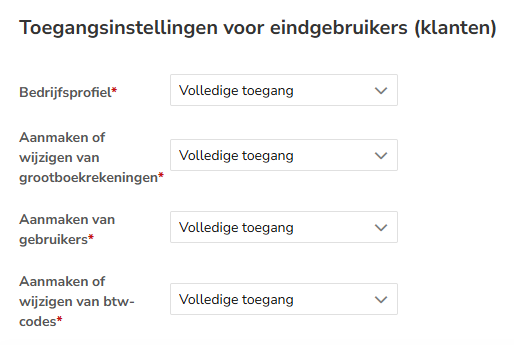 Alleen een gebruiker met de rol 'Portaalbeheerder' kan de instellingen voor de toegang van eindgebruikers (klanten) wijzigen.