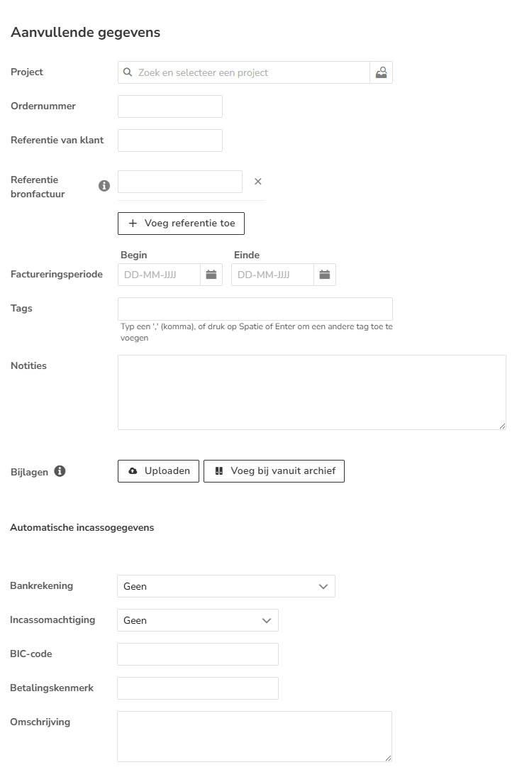 Aanvullende gegevens toevoegen