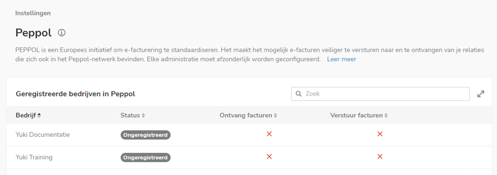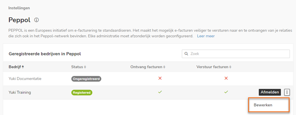 - een bedrijf (administratie in Yuki) afmelden bij Peppol.