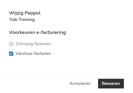 De desbetreffende administratie is nu geregistreerd bij Peppol waardoor vanaf dit moment, afhankelijk van de geselecteerde voorkeuren voor e-facturering, e-facturen ontvangen en/of verstuurd kunnen worden.