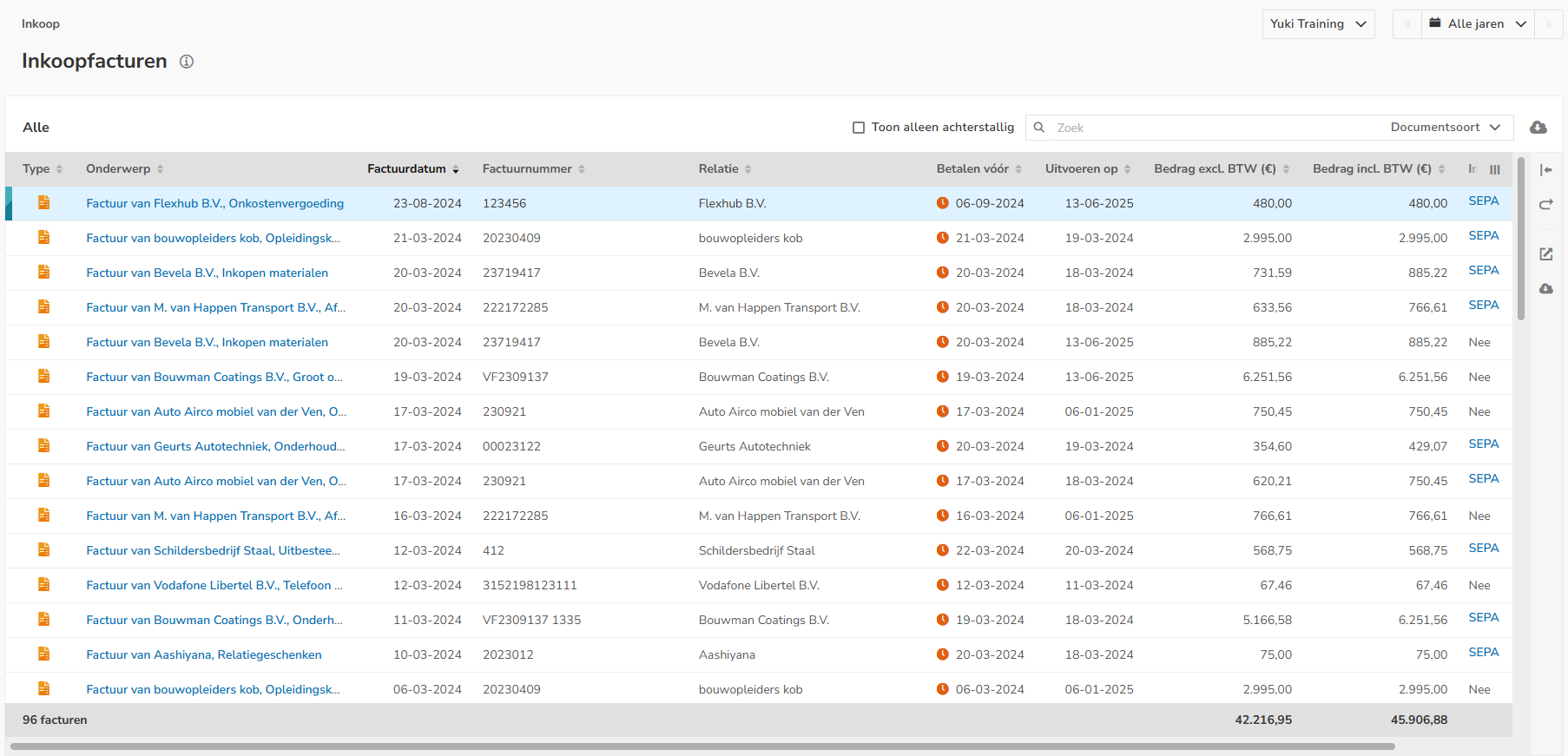 Overzicht Alle inkoopfacturen
