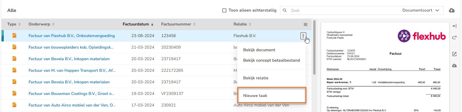 Taak voor factuur aanmaken