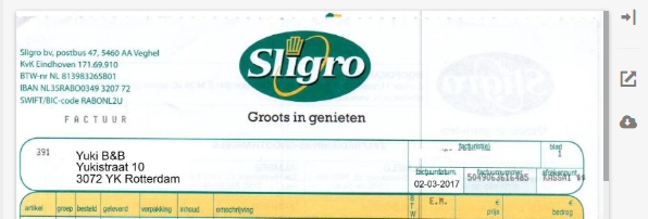 Klik op de regel van het desbetreffende document/transactie en vervolgens op één van de knoppen rechts in het scherm: