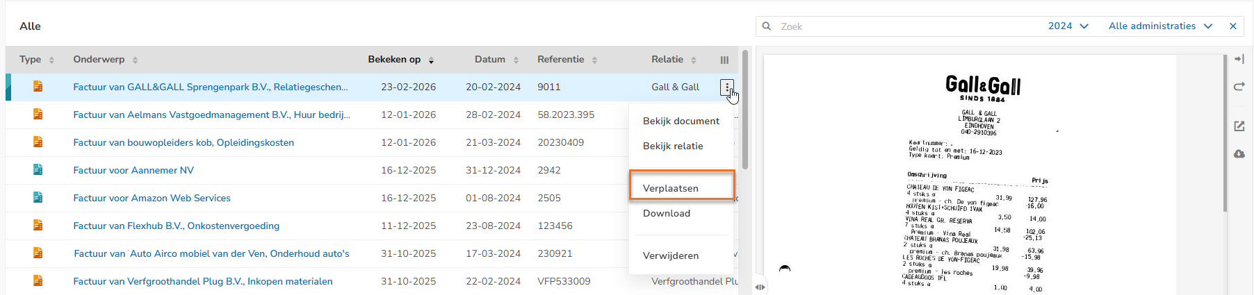 - een document verplaatsen (niet beschikbaar voor alle documenttypen)