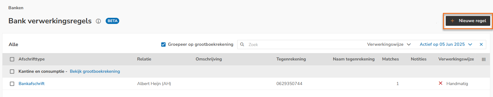 Als je weet dat een bepaalde transactie nog vaker gaat terugkomen en deze telkens op dezelfde manier afgehandeld kan worden, kun je het beste een bank verwerkingsregel aanmaken.