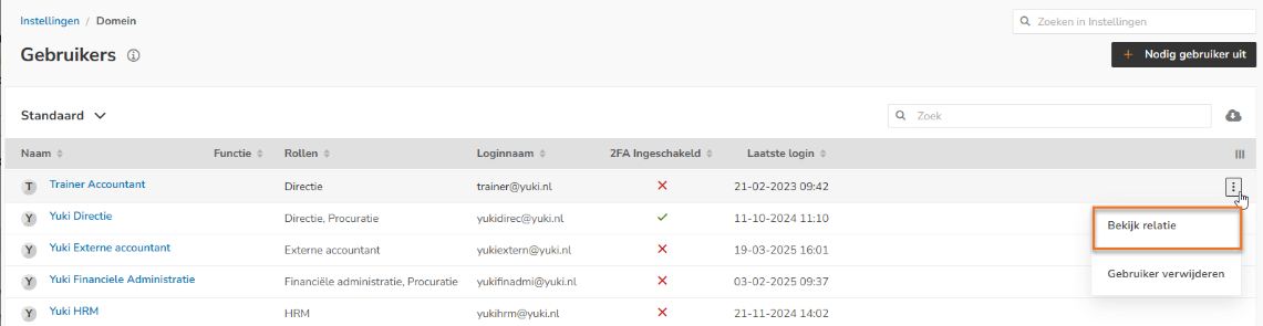 (zie artikel Gebruiker(s) aanmaken in mijn domein of Gebruiker(s) aanmaken in domein) - een relatie bekijken