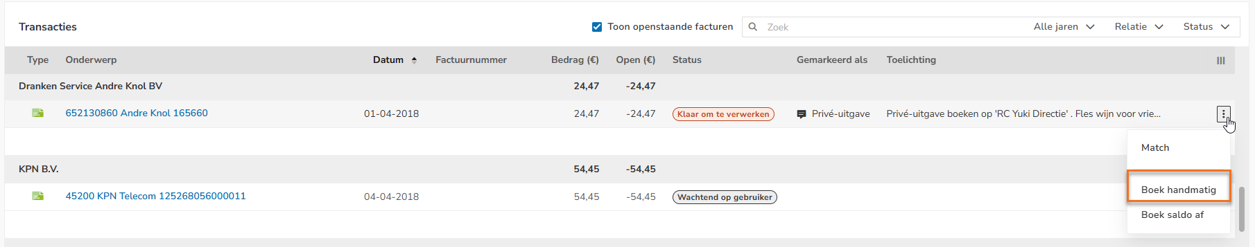 - een transactie handmatig boeken