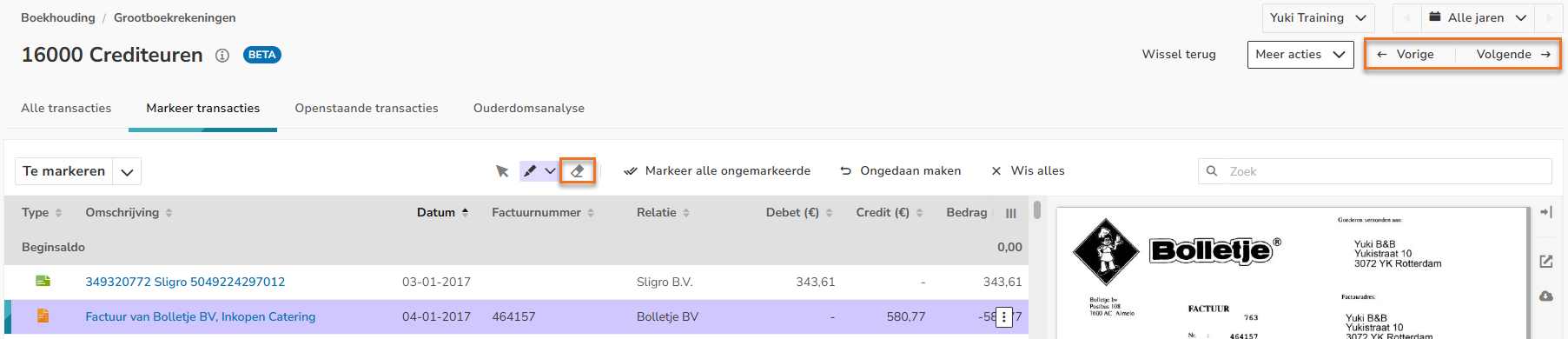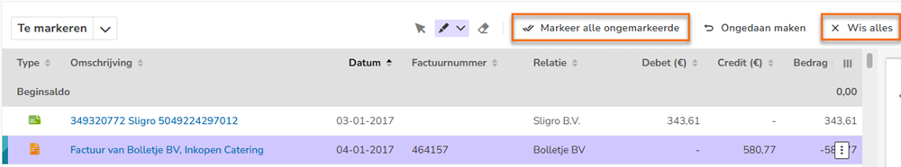 OF - klik je op de knop met de gom en vervolgens op de transactie(s) waarvan je de markering ongedaan wilt maken.
