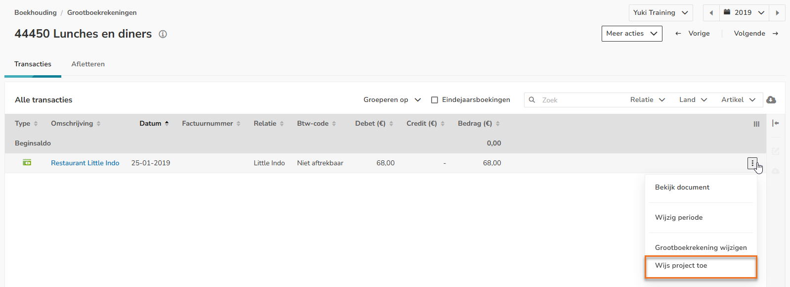 Een banktransactie kun je in Yuki koppelen aan een project: