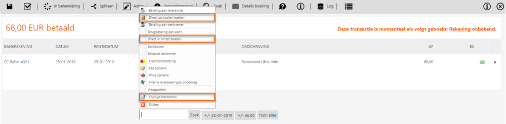 - vanuit de geopende banktransactie in de banktransacties workflow