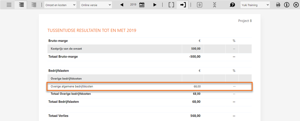 Je vindt de banktransactie in het project terug in het overzicht Omzet en kosten van het project.