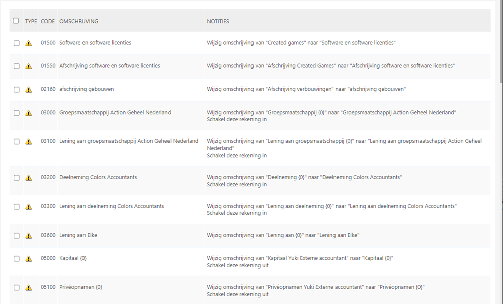 Deze verschillen kun je aanpassen op basis van de grootboekrekeningnummers.