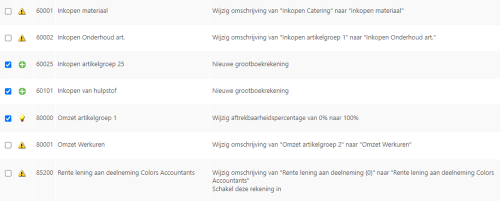 Voor alle geselecteerde verschillen in de lijst werk je het huidige rekeningschema bij door te klikken op de knop Rekeningschema bijwerken.