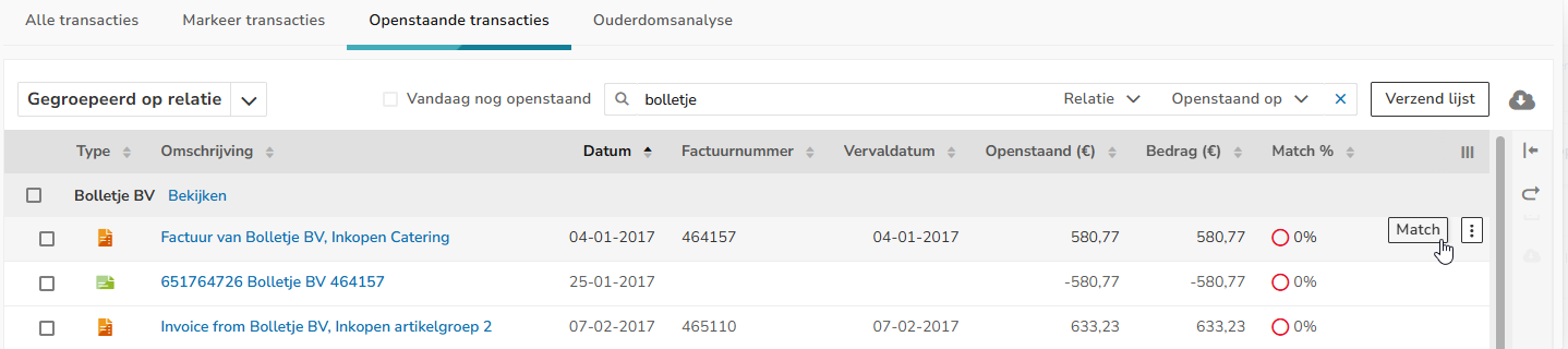 Openstaande posten van relatie in bulk matchen