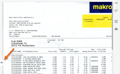 Klik op de regel van de desbetreffende vraagpost en vervolgens op de knop Tonen /Verbergen (icoontje met pijltje naar rechts / links) om het documentvoorbeeld in het scherm te laten tonen of te verbergen.