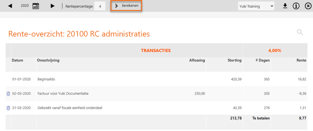 Yuki voert de renteberekening uit op basis van de dagen.