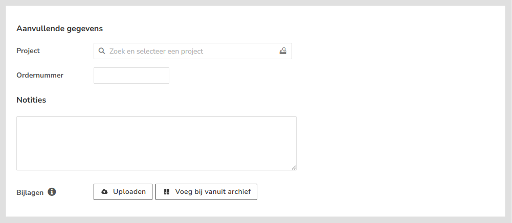 Het is mogelijk om een project te koppelen aan de verkoopfactuur. Dit is bedoeld voor intern gebruik en wordt dus niet vermeld op de verkoopfactuur.