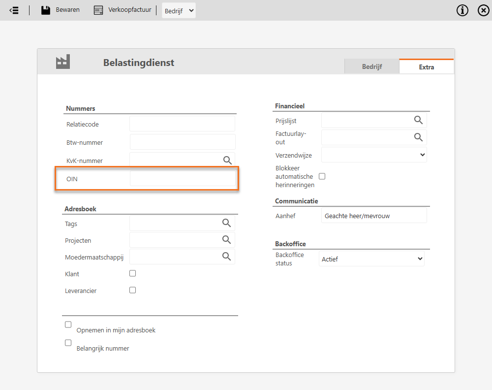 Om het OIN-nummert aan een relatie toe te voegen: