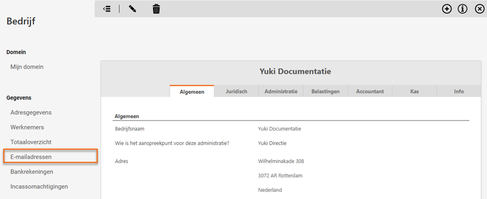 - Klik links in het scherm op E-mailadressen