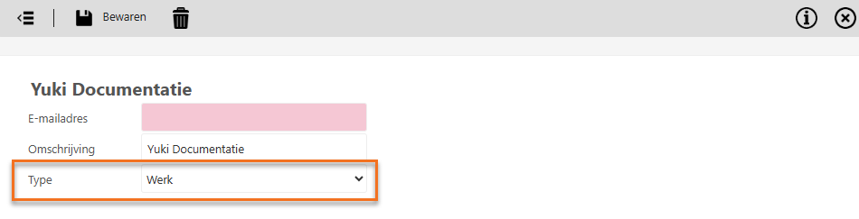 Het al bestaande of nieuwe verzender e-mailadres moet van het type 'Werk' zijn.