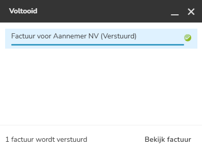 Na het aanmaken en verwerken van de verkoopfactuur verschijnt vervolgens de melding dat de verkoopfactuur is verstuurd naar de klant.